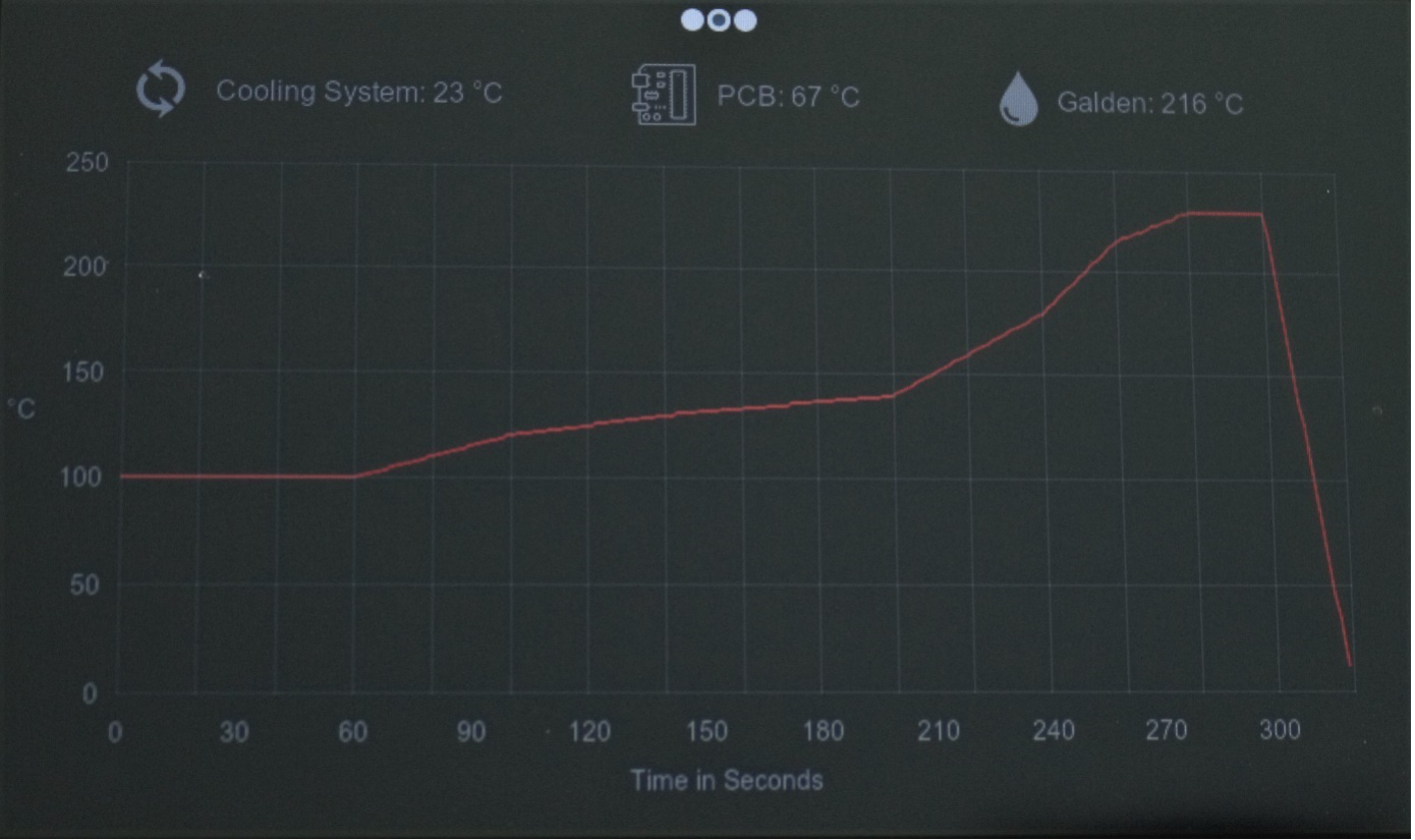 先进的气相焊接系统,如PCB Arts的气相一支持动态和快速上升的温度曲线。此外,该系统还包括防冷凝模式。通过在完成焊接过程后将PCB的温度保持在120°C,可以最大限度地减少Galden在PCB上的冷凝。除了可以将电路板干燥移除外,还可以最大限度地减少Galden的消耗。