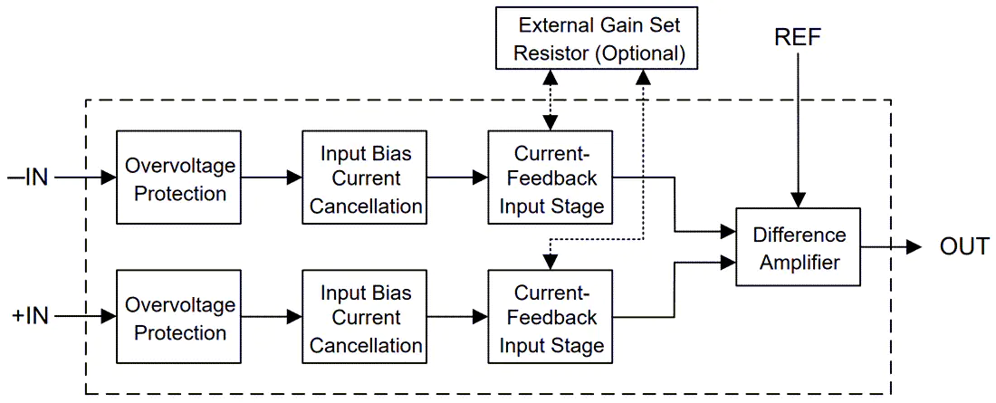 德州仪器公司的INA823经过优化,可提供高共模抑制比。当G = 1时,在全输入共模范围内,共模抑制比超过84dB。INA823具有较宽的共模电压范围,低至负供电150mV。该设备设计为低电压操作从2.7V单电源和双电源高达±18V。低功耗和单电源操作使手持电池操作系统成为可能。
