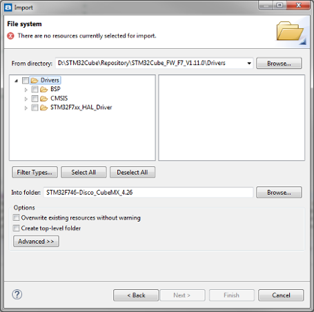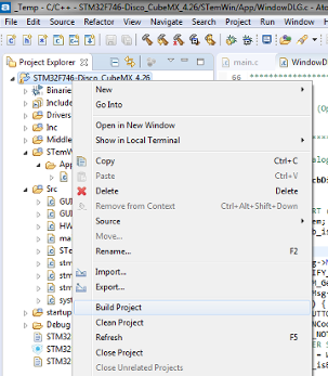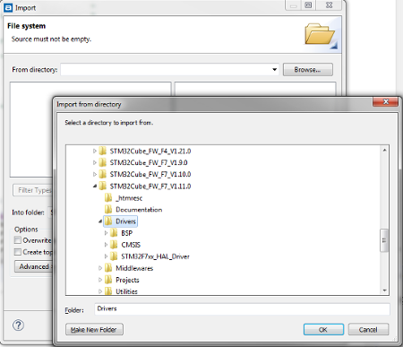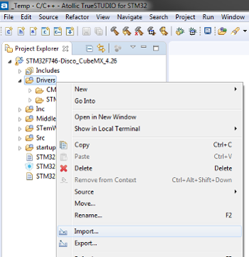 在Atolic TrueStudio中导入生成的项目,右键单击Drivers文件夹并选择Import