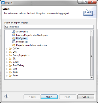 然后单击完成要真正导入文件,您现在应该在Atolic项目中具有以下结构