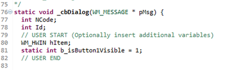 - 在USER START/END Callback 1部分的cbDialog函数中的WindoDLG.c文件中添加