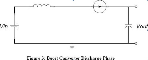 如图,这是当开关断开(三极管截止)时的等效电路。当开关断开(三极管截止)时,由于电感的电流保持特性,流经电感的电流不会马上变为0,而是缓慢的由充电完毕时的值变为0。而原来的电路已断开,于是电感只能通过新电路放电,即电感开始给电容充电,电容两端电压升高,此时电压已经高于输入电压了。升压完毕。