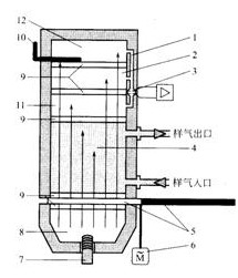 5-切光片,6-切光片马达,7-红外光源,8-反射镜,9-光学窗口,