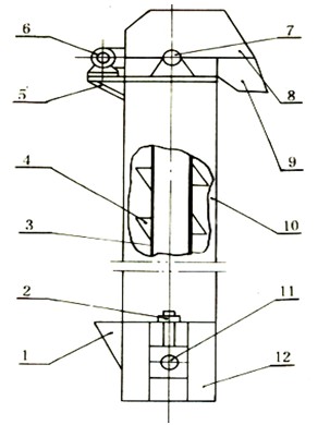 9-卸料口10-中间罩壳 11-拉紧轮 12-底座