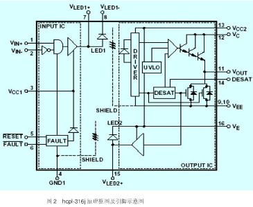 多功能型的大功率 igbt 驱动保护电路除了提供直接驱动 igbt 的功能之外,还可以提供 完善的保护功能,如 hcpl-316j, m57962 等,如图 2和图 3所示,它们一般采用混合厚膜 封装技术或者采用集成封装技术, 可以直接兼容 cmos/ttl 电平.工程师进行设计时一般只需 要配上隔离电源电路,死区控制电路,逻辑处理电路,门极驱动电阻等,就可以成为一个较 为完整的大功率 igbt 驱动保护电路.