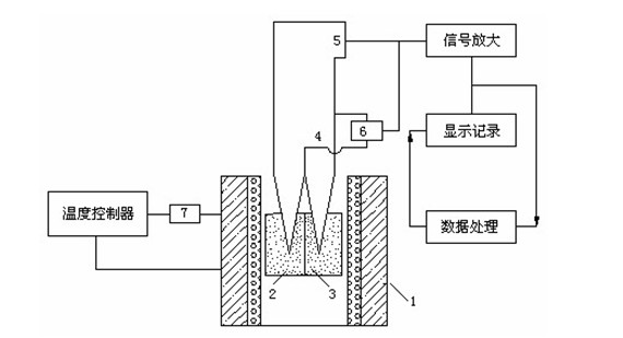 4、差热系统。差热系统是整个装置的核心部分,由样品室、试样坩埚、热电偶等组成。其中热电偶是其中的关键性元件,即使测温工具,又是传输信号工具,可根据试验要求具体选择。