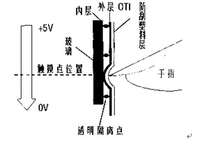 电阻屏的主要部分是一块与显示器表面配合非常好的电阻薄膜屏,这是一种多层的复合薄膜,由一层玻璃或有机玻璃作为基层,表面涂有一层秀明的导电层,上面再盖有一层外表硬化处理、光滑防刮的塑料层,它的内表面也涂有一层透明导电层,在两层导电层之间有许多细小(小于千分之一英寸)的透明隔离点把它们隔开绝缘。当手指触摸屏幕时,平常绝缘的两层导电层在触摸点位置就有了一个接触,控制器侦测到这个接通后,其中一面导电层接通У轴方向的5Ⅴ均匀电压场,另一导电层将接触点的电压引至控制卡进行A/D转换,得到电压值后与5Ⅴ相比即可得触摸点的у轴坐标,同理得出Χ轴的坐标,这就是所有电阻技术触摸屏共同的最基本原理。