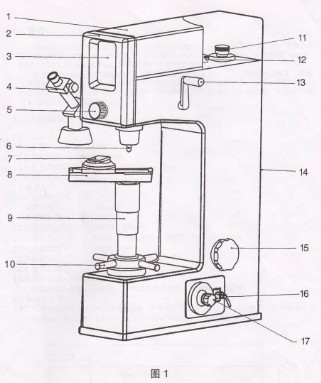 1更换金刚石压头或球压头。 2.将保护罩退下,低于升降螺杆上平面,然后拧紧螺钉。 3安装砝码组。 4用水平仪校准硬度计。 5按要求选用试验力和压头。 |